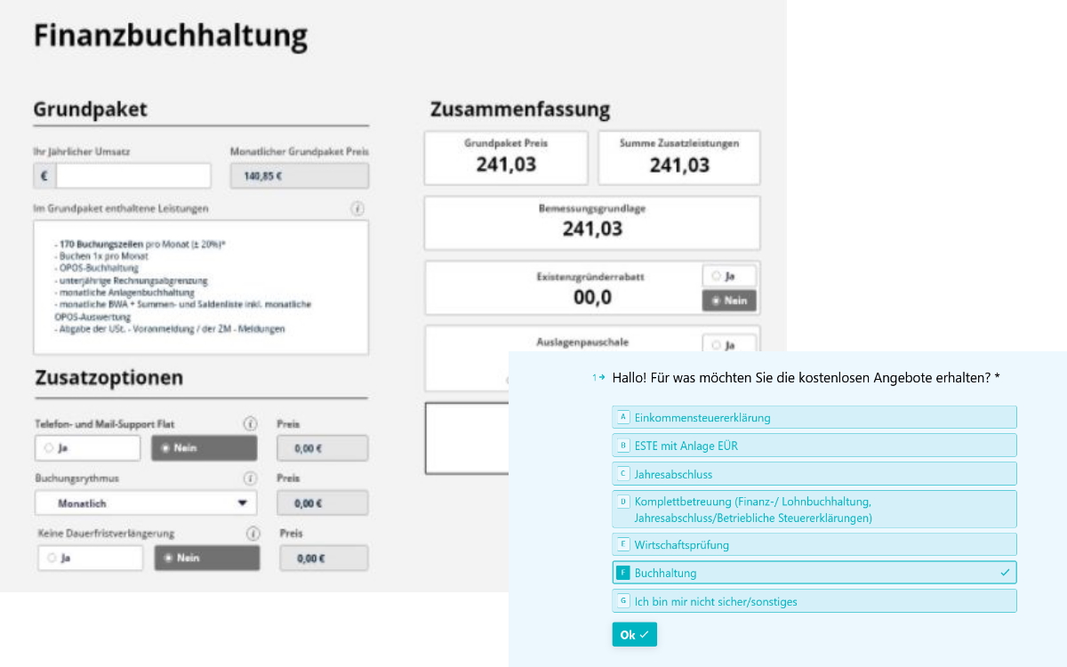 Wenn Sie sich mehr Anfragen wünschen oder Ihre Leistungen auch überregional anbieten möchten, können wir Sie natürlich auch gern bei der Akquise unterstützen. Sei es durch klassische SEO-Maßnahmen oder Mandantengewinnung über Social Media. Und Mandanten, die nicht vor Ort sind, lassen sich inzwischen ganz einfach betreuen, denn viele einfachere Aufgaben können über die Website abgebildet werden und selbst persönliche Beratungsgespräche sind inzwischen Online eine Selbstverständlichkeit.